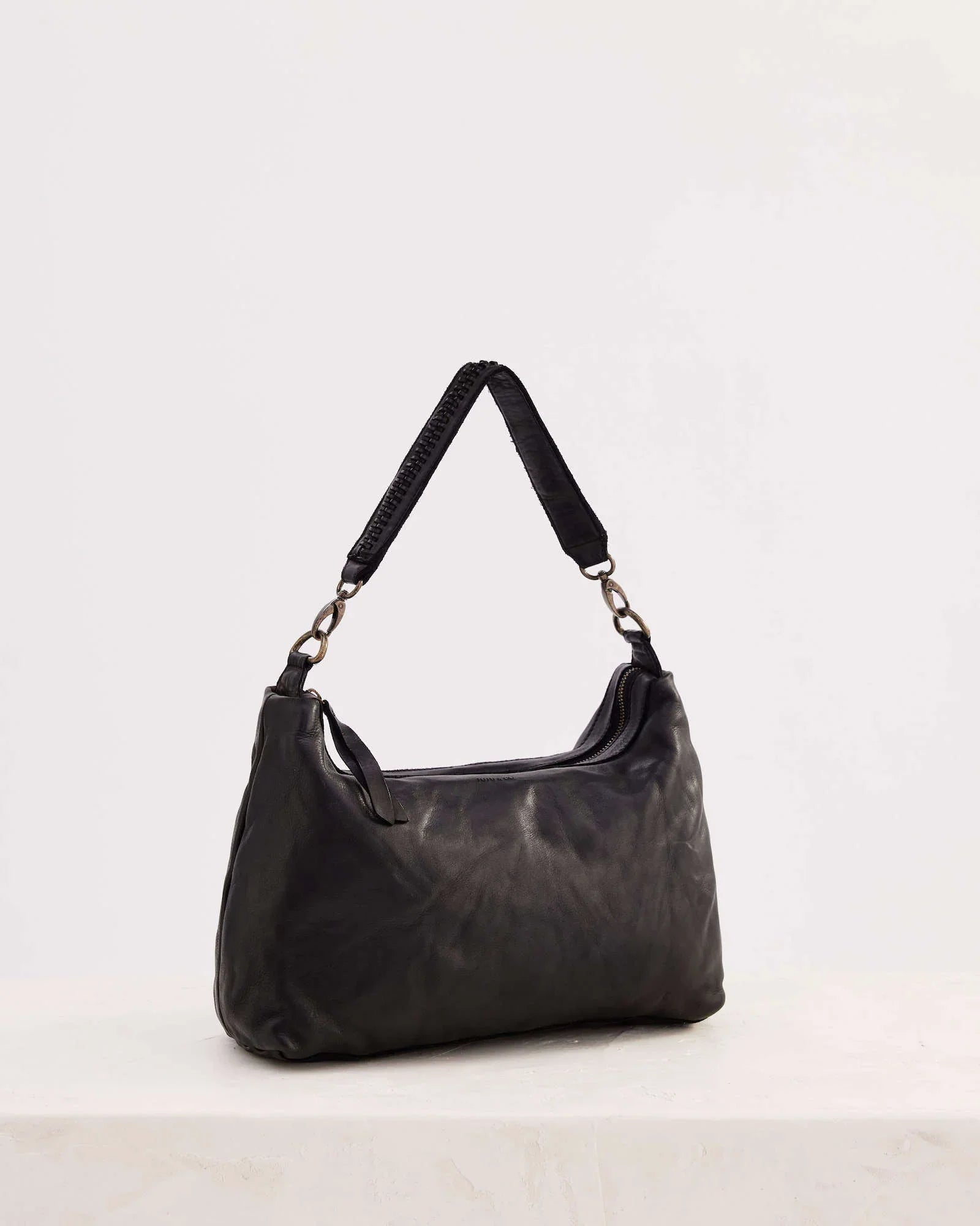 The Signature Slouchy is a shoulder bag made from washed leather. This large shoulder bag is elevated with a braid detail short strap.